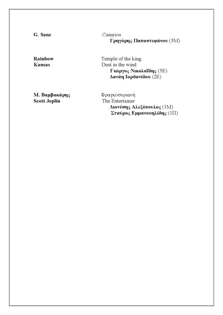 των τάξεων κιθάρας κ. Νίκου Γεωργίου