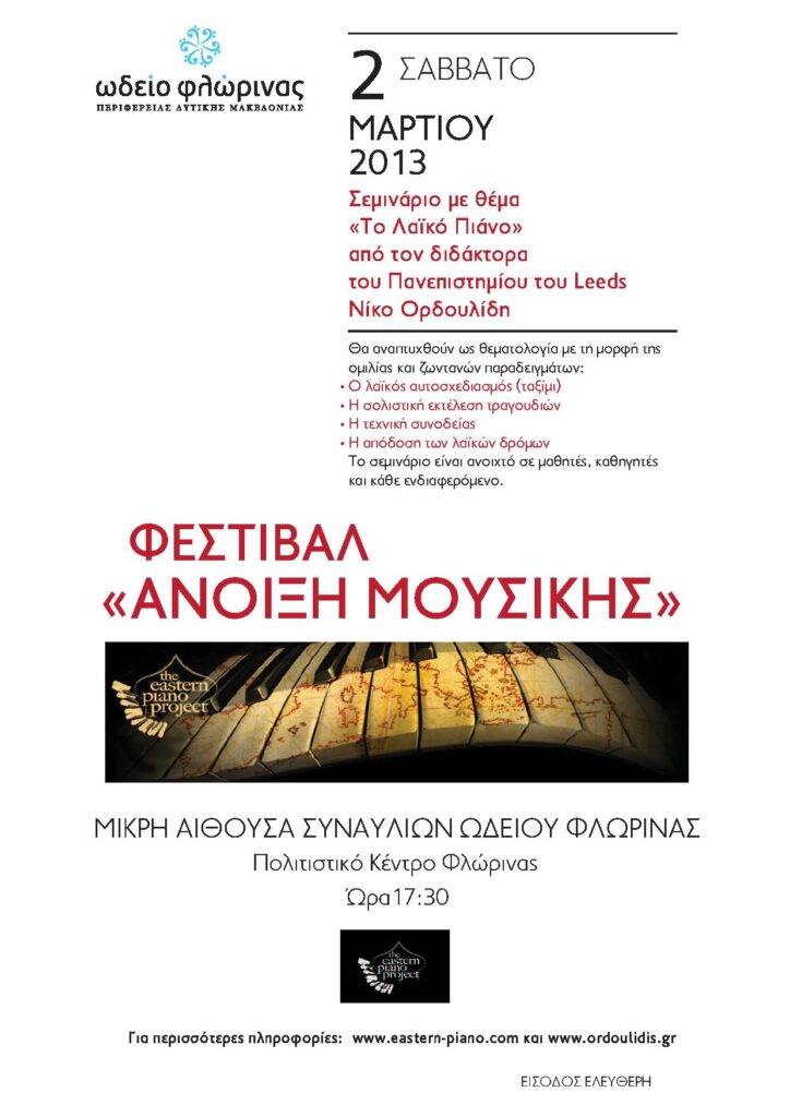 Σεμινάριο με θέμα “Το λαϊκό πιάνο” από τον Νίκο Ορδουλίδη